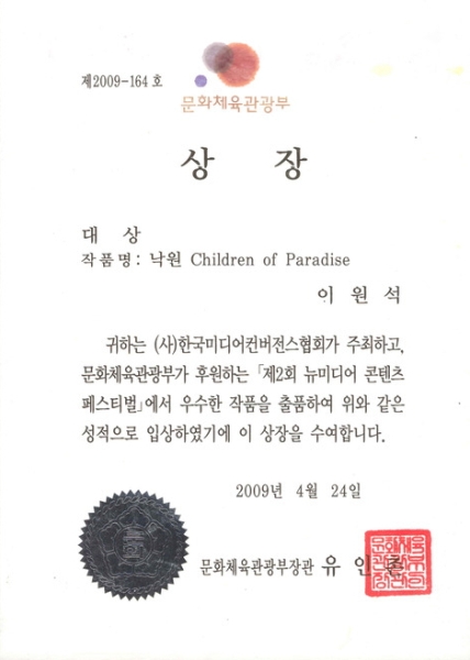 [공모전] 2009년 제2회 뉴미디어 콘텐츠 페스티벌 대상 수상