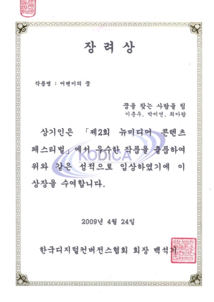 [공모전] 2009년 제2회 뉴미디어 콘텐츠 페스티벌 장려상
